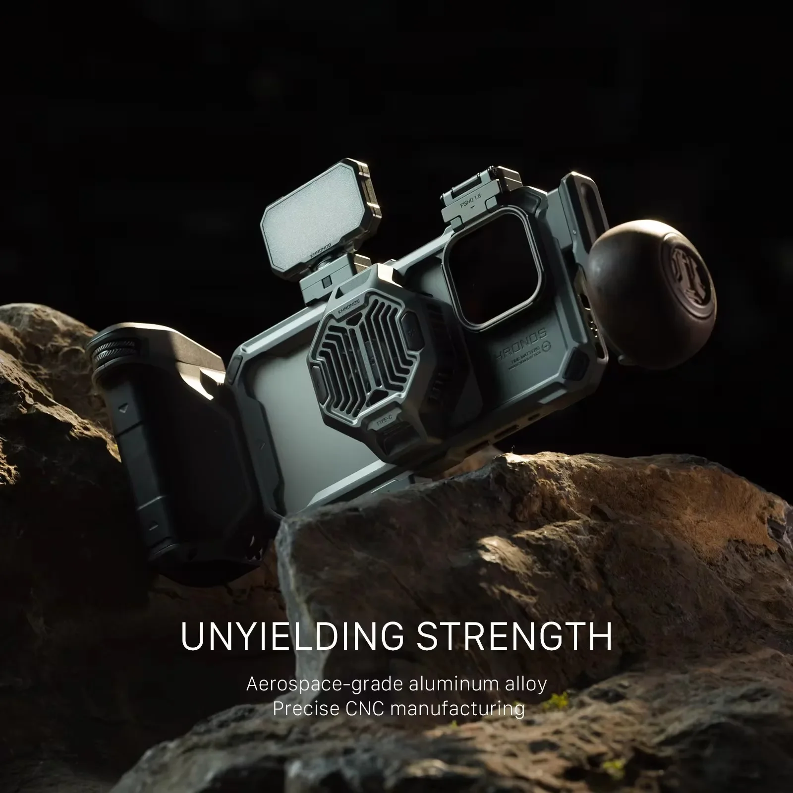 Khronos ecosystem incorporates advanced mobile solution, providing a variety of professional features such as lighting,monitoring, filters,interface expansion (1/4, NATO, Cold Shoe), power supply, cooling fan, etc.